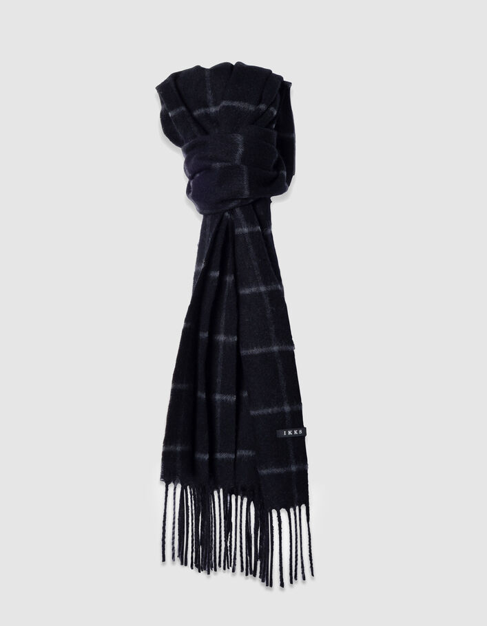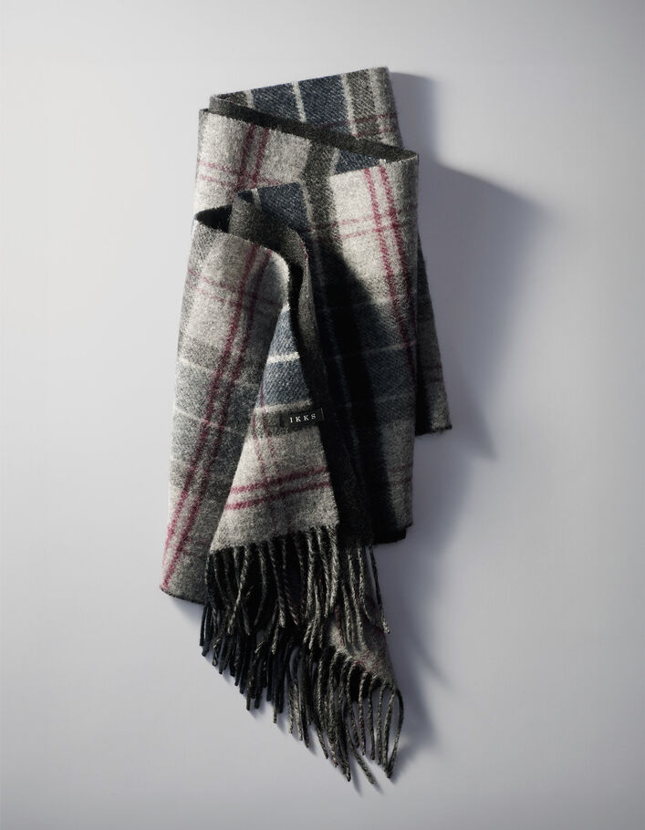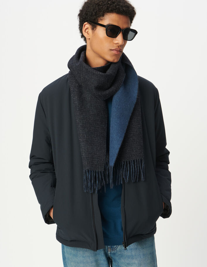 Echarpe biface grise motif carreaux et bleue unie Homme
