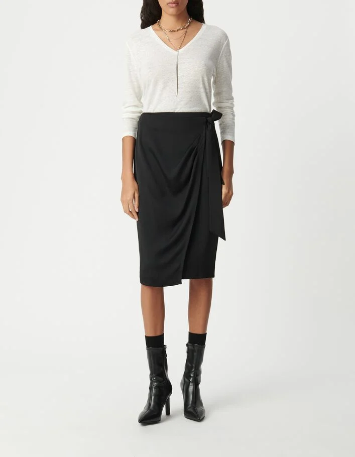 Jupe portefeuille midi noire noeud côté Femme